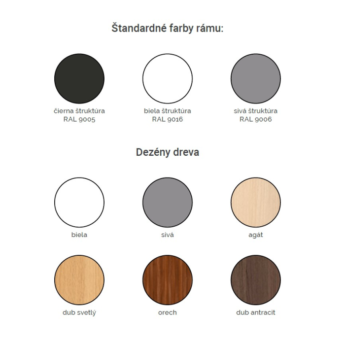 • štandardné farby rámu: čierna RAL 9005