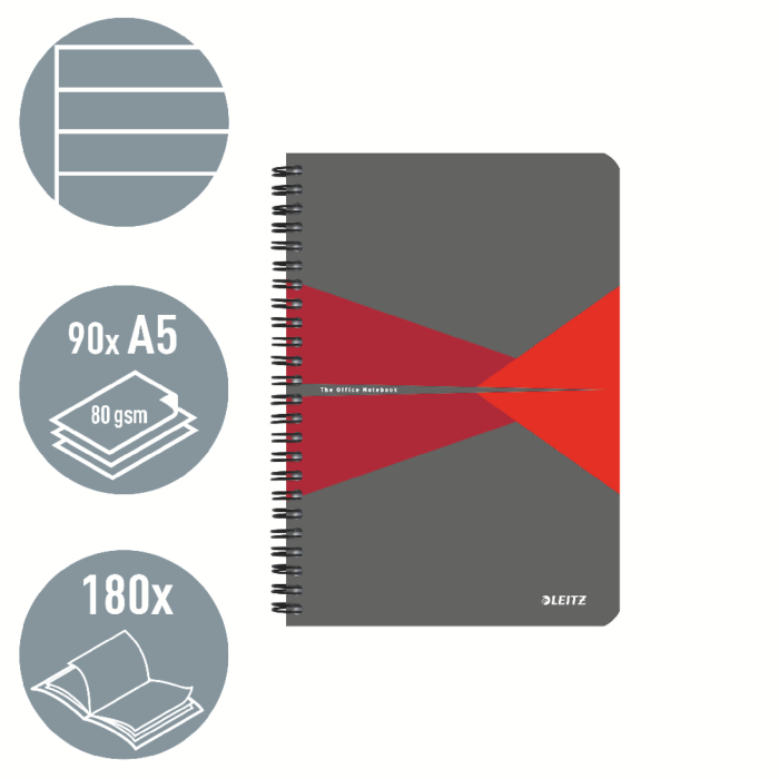 Blok Leitz Office Card A5 90 listov linajkový červený