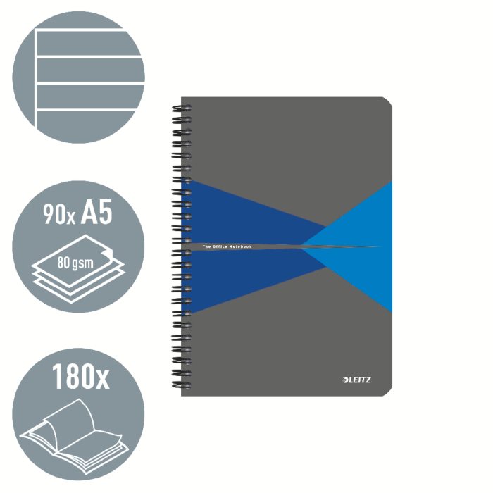 Špičkový zápisník na každodenné používanie. Každý zápisník má 90 listov papiera najvyššej kvality s gramážou 80 g/m2, drôtená väzba umožňuje 360-stupňové otváranie, laminované kartónové dosky.
