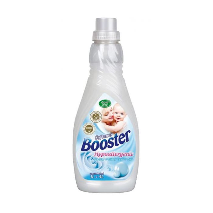 Tekutý avivážny prostriedok Booster sa odporúča na všetky druhy tkanín. Bielizni dodáva extrémnu jemnosť, sviežosť a dlhotrvajúcu vôňu. Antistatické zložky, obsiahnuté v aviváži bránia vzniku elektrického náboja v tkaninách. Jemné zloženie nespôsobuje žiadne alergie alebo podráždenie pokožky. Verzia Hypoalergenic bola podrobená rozšíreným dermatologickým testom. Objem 1 liter.