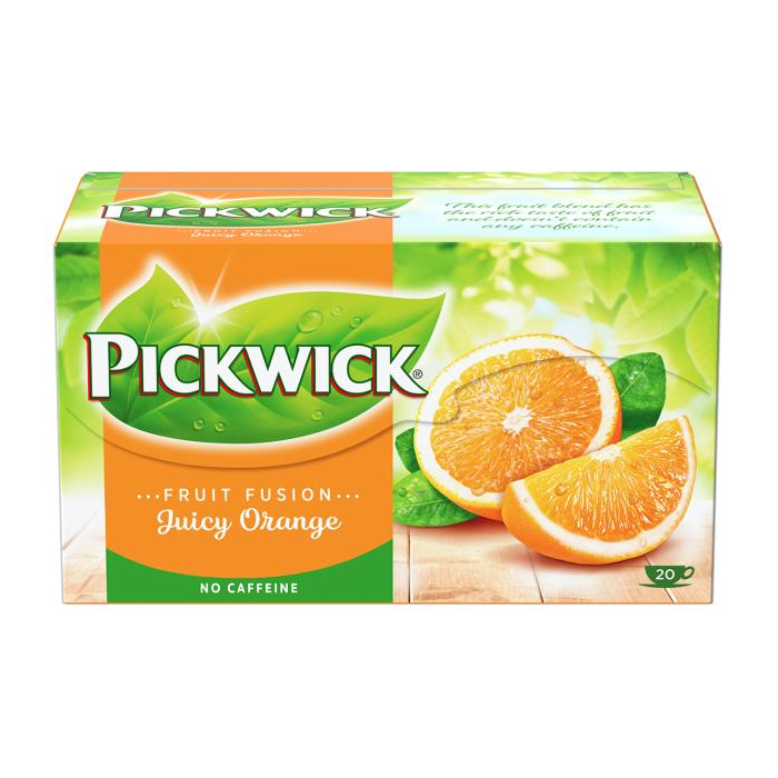 Ovocný čaj Pickwick Šťavnatý pomaranč. Dávku osviežujúcej chute plnej pomarančov si teraz môžete dopriať kedykoľvek. Ovocný čaj aromatizovaný s pomarančovým oplodím, porciovaný. Balenie obsahuje 20 vrecúšok čaju. Hmotnosť 35 g.