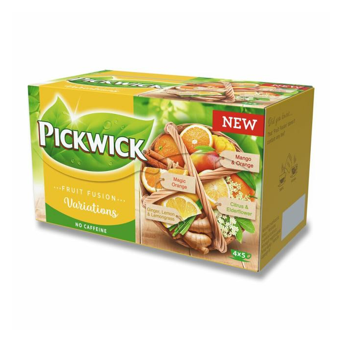 Užite si sviežu a lahodnú paletu ovocných chutí s kolekciou Pickwick Fruit Fusion Variations. Balenie obsahuje štyri osviežujúce príchute, ktoré vás potešia v každej šálke. Vhodné na celodenné pitie - neobsahuje kofeín. 4 druhy čaju po 5 sáčkoch (celkom 20 sáčkov). Obsah 37,5 g (2 x 5 x 1,75 g, 2 x 5 x 2 g).