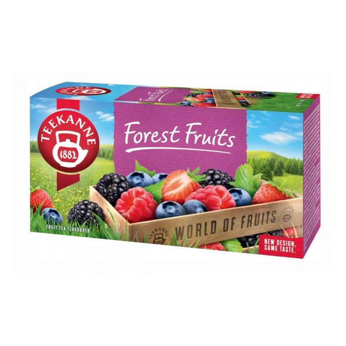 Ovocno-bylinný čaj aromatizovaný, s príchuťou lesných plodov, malín a černíc.