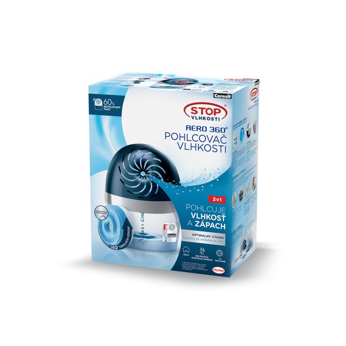 Ceresit na zabránenie vzniku plesní, zrážania vodnej pary, povlakov na tapetách a stuchnutému vzduchu. Znižuje vlhkosť na ideálne hodnoty.