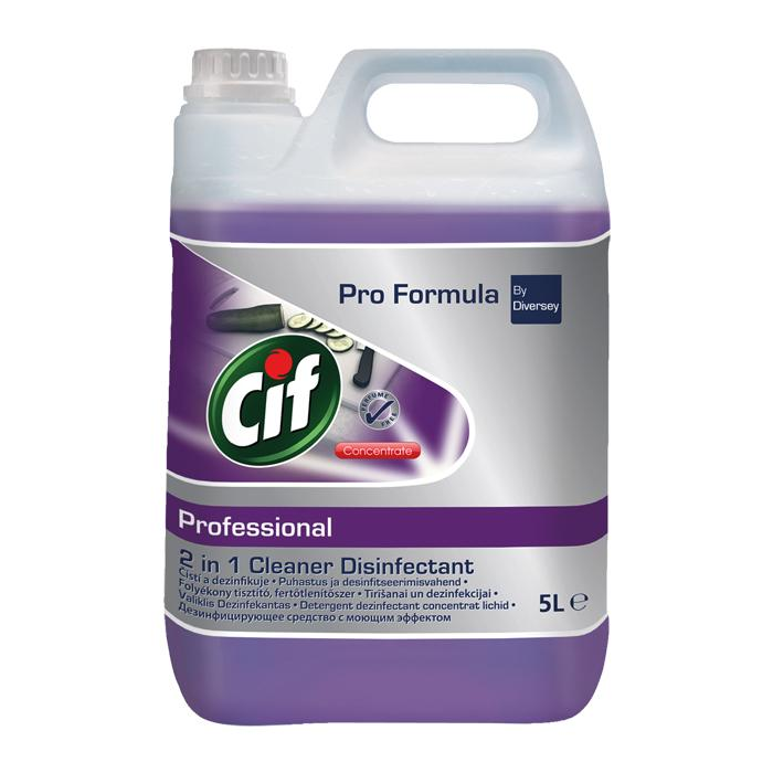 Zabíja mikroorganizmy, silný čistič, bez parfumu. Cif 2in1 čistí a dezinfikuje, je neparfumovaný prostriedok na čistenie a dezinfekciu všetkých povrchov v potravinárskych prevádzkach. Je účinný proti širokému spektru mikroorganizmov a efektívne odstráni mastnotu a zaschnuté zvyšky potravín.