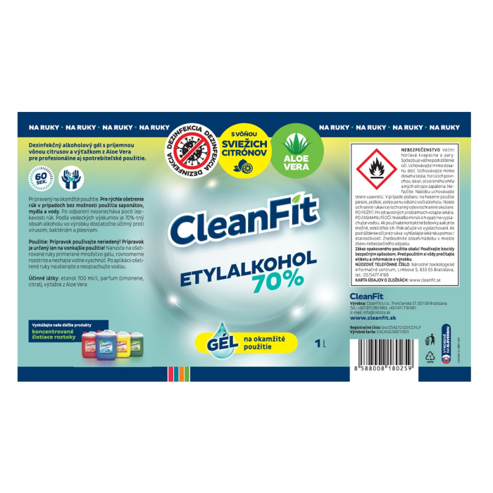 | Typ čistiaceho prostriedku | dezinfekčný gél |
