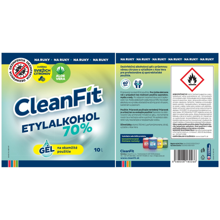 | Typ čistiaceho prostriedku | dezinfekčný gél |