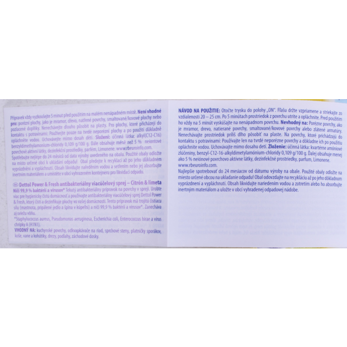 | Typ čistiaceho prostriedku | antibakteriálny sprej |