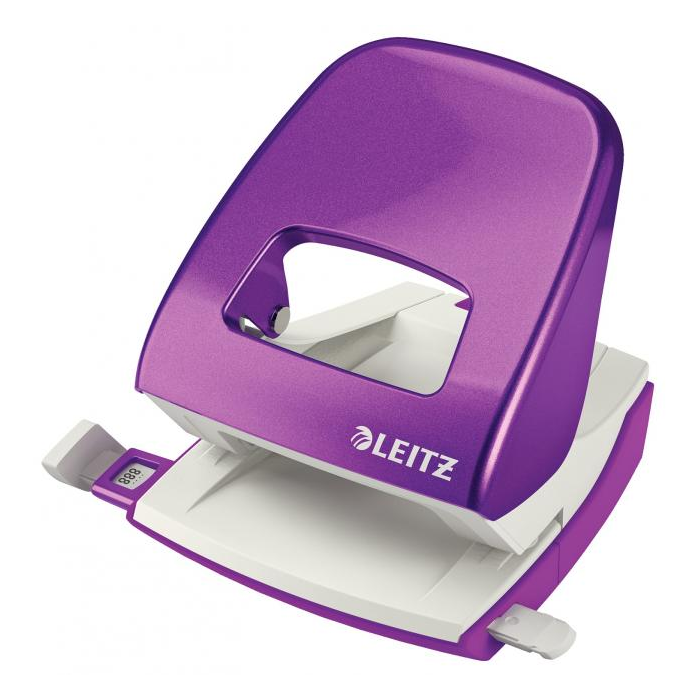 Pevná a spoľahlivá dierovačka pre každodenné použitie. Vo farbách radu Leitz WOW. Telo i rameno vyrobené z kovu. Protišmykové plastové dno proti poškodeniu nábytku. Kapacita dierovania: 30 listov (80 g/m2). Patentovaná úchytka a ostrejšie dierovacie segmenty pre menšiu silu pri dierovaní. Príložník s kontrastnou potlačou jednotlivých formátov, rámik pre jasné určenie formátu, pevná fixácia. Dodajte svojmu pracovnému miestu alebo domácnosti farbu a skombinujte s ostatnými kancelárskymi výrobkami z radu Leitz WOW. Pohodlné vyprázdňovanie odrezkov, dno sa len čiastočne odklopí. Farba purpurová.