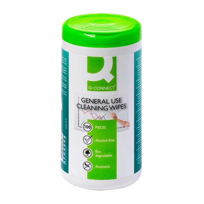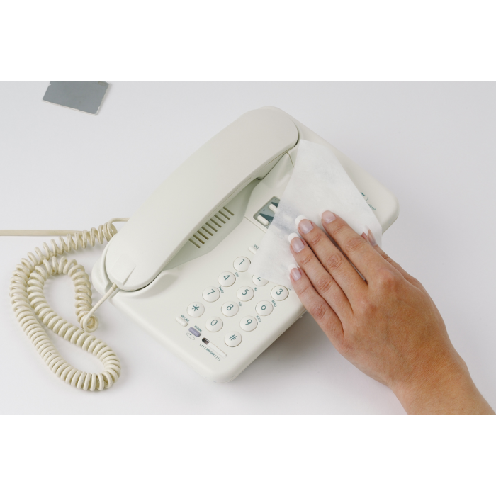 Čistiace utierky na čistenie telefónov a pevných povrchov z plastu, ako sú kryty a povrchy tlačiarní, telefónov a kancelárskeho vybavenia. Praktické balenie - dóza so 100 útržkami oddelenými perforáciou.