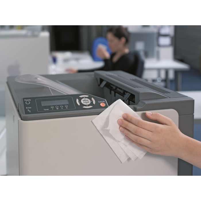 Mokré utierky s antistatickým zložením bez obsahu alkoholu na pohodlné čistenie krytov, povrchov, tlačiarní, telefónov a kancelárskeho vybavenia. Praktické balenie - dóza so 100 útržkami oddelenými perforáciou. Tento chemický prípravok je nebezpečný.