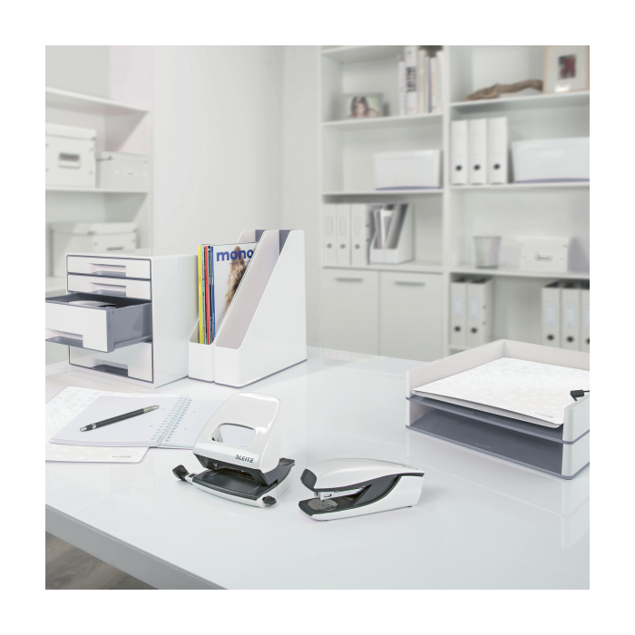 Elektrická zošívačka Leitz New NeXXt WOW. Vďaka jednoduchému ovládaniu jednou rukou je ideálna na časté používanie.