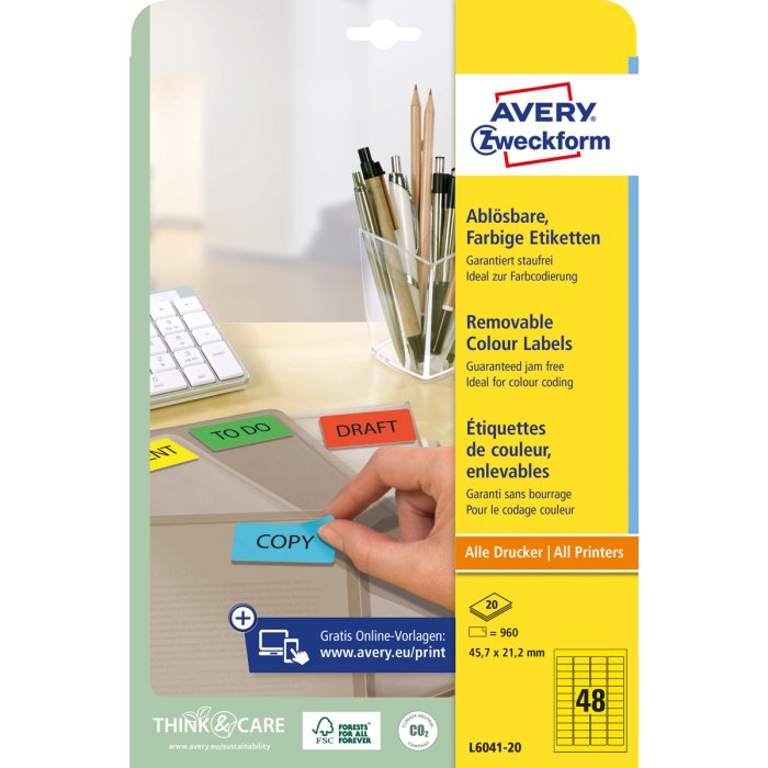 Odnímateľné samolepiace etikety STICK & LIFT odlepiteľné a znovu prelepiteľné (na bežnom povrchu až 5×) bez toho, aby zanechali stopy lepidla. Sú vhodné pre všetky druhy tlačiarní a kopíriek. Využiteľné najmä na každodenné pracovné činnosti, ako napr. vytváranie popisov, cenoviek, označovanie výrobkov, majetku a pod. Farba žltá. Etikety na hárku 48 ks. Balenie 20 hárkov.