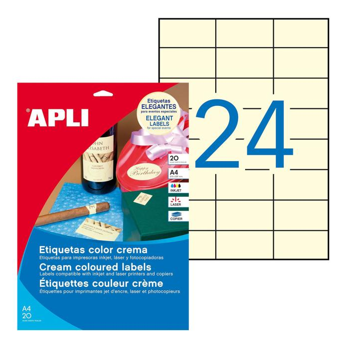 Elegantné krémové etikety na špeciálnu príležitosť - darčeky, pozdravy, vína, originálne poštové zásielky - sú vhodné do atramentových a laserových tlačiarní a kopíriek. Formát A4.