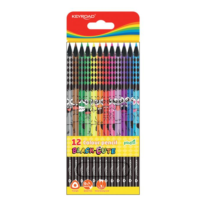 Farbičky trojhranné elastické KEYROAD čierne drevo, 12 ks