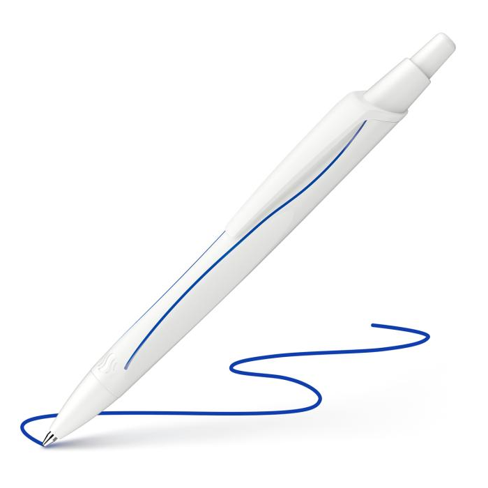 Guľôčkové pero Schneider Reco M, farba biela s modrou náplňou.