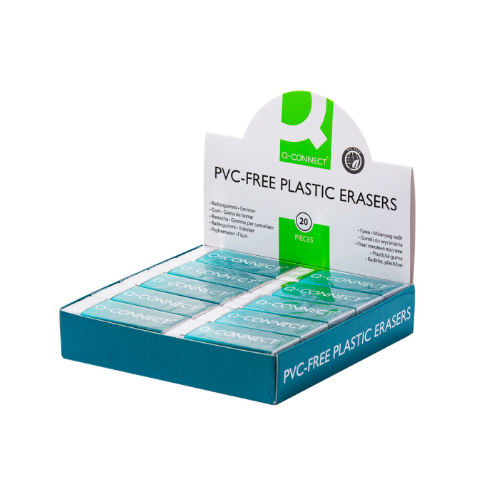 Plastová guma na tuhu a pastelky. Väčšie balenie 20 ks. Rozmery 60 × 22 × 11 mm.