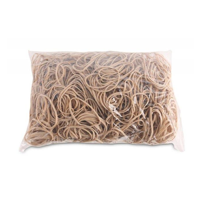 Odolné a pružné gumičky vyrobené z materiálu s prímesou gumy (60 %). Rozmery (hrúbka × šírka) 1,5 × 3 mm. Priemer 50 mm. Farba prírodná.