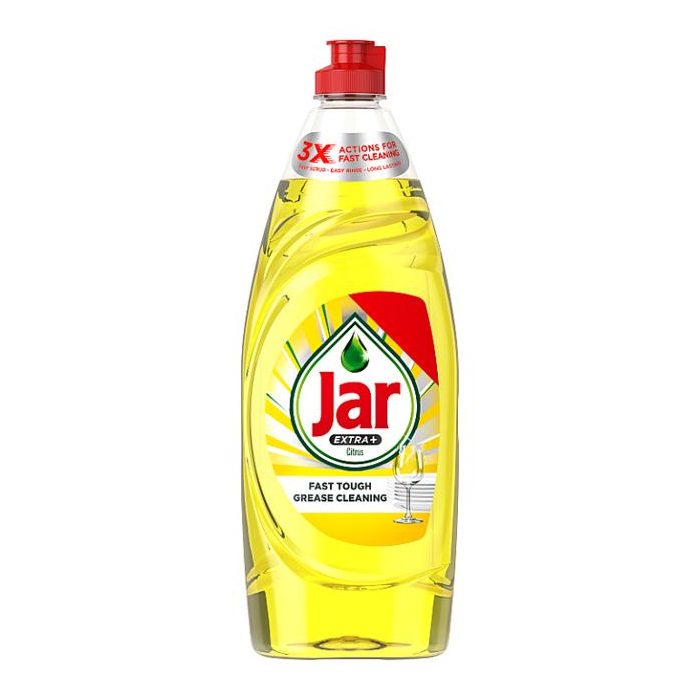 Tekutý prostriedok na umývanie riadu Jar Extra+ umyje riad rýchlo a ľahko, má silné účinky pri odstraňovaní mastnoty a zároveň si vás získa citrusovou vôňou.