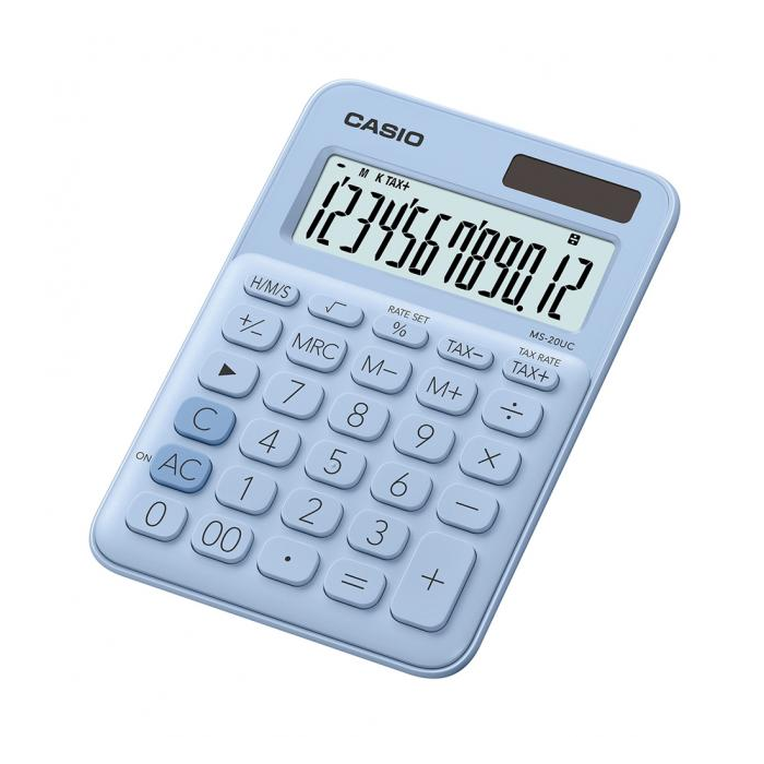 Stolová kalkulačka s veľkým 12-miestnym LCD displejom. Farba svetlo modrá.