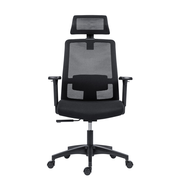 • kancelárska stolička so sieťou na operadle a podhlavníku