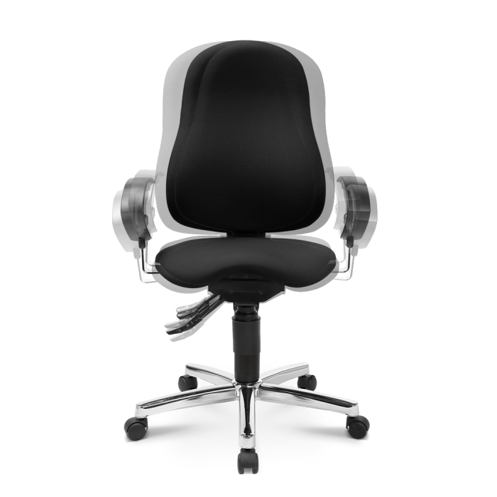 • pevný a komfortný permanentne kontaktný mechanizmus, stabilný kovový chrómovaný kríž so samobrzdiacimi bezpečnostnými kolieskami