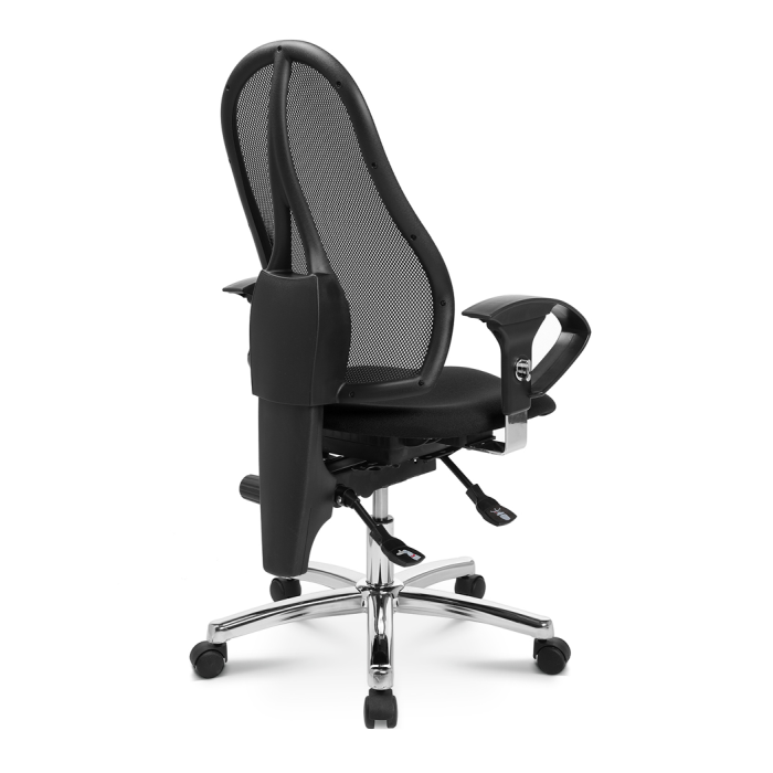 • obrysovo tvarované dizajnové operadlo s priedušným poťahom zo sieťoviny, plynule výškovo nastaviteľné