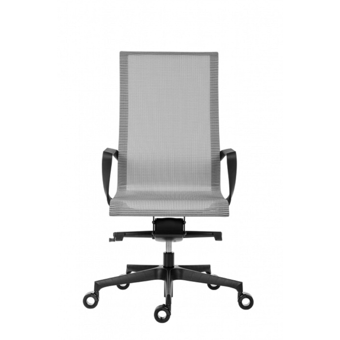 Moderne konštruované kreslo stolička so sieťovinou na sedadla a operadla.