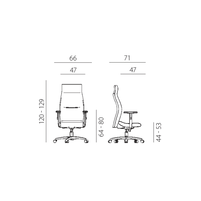 • synchrónny mechanizmus (nezávislý nastaviteľný uhol medzi sedadlom a opierkou) s 5-násobnou aretáciou, nastavenie sily protiváhy v rozpätí hmotnosti 60 - 130 kg