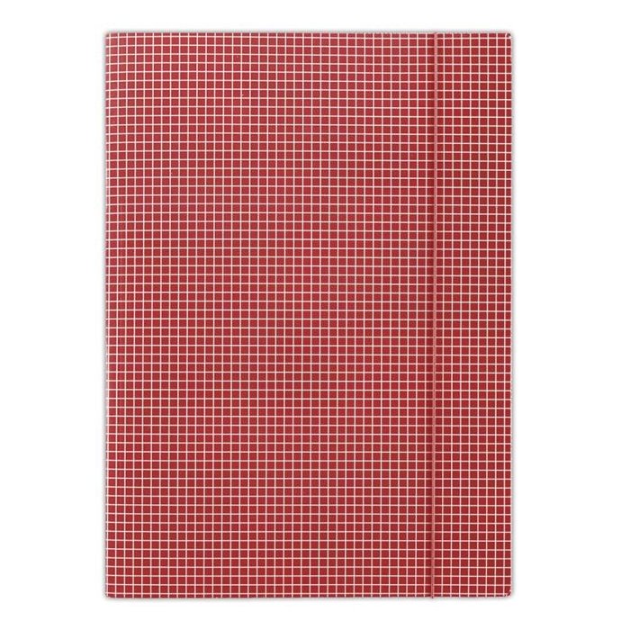 Kartonový obal vyrobený z lepenky s hmotnosťou 400g. Jednostranne potiahnutý vysoko lesklým tlačovým lakom, okrúhla vertikálna guma vo farbe obalu chráni obsah pred vykĺznutím. Károvaná potač. Formát: A4. Farba červená. Rozmery 232 x 317 mm.