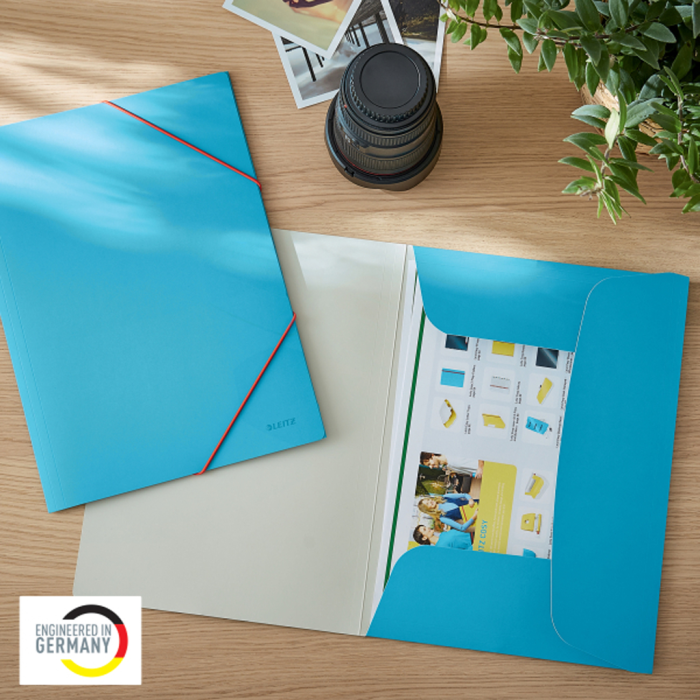 Značková kolekcia Leitz Cosy vám umožní cítiť sa ako doma, nech už vás váš pracovný deň zavedie kamkoľvek. Vďaka minimalistickému dizajnu a lákavej matnej povrchovej úprave pridáte svojmu pracovnému priestoru štýl a farbu. Dosky s chlopňami Leitz Cosy s hebkým povrchom sú ideálne na organizáciu a usporiadanie dokumentov, keď máte jednu schôdzku za druhou. Tieto kartónové dosky prvotriednej kvality sú perfektným doplnkom či už domov alebo do kancelárie. Farba modrá.