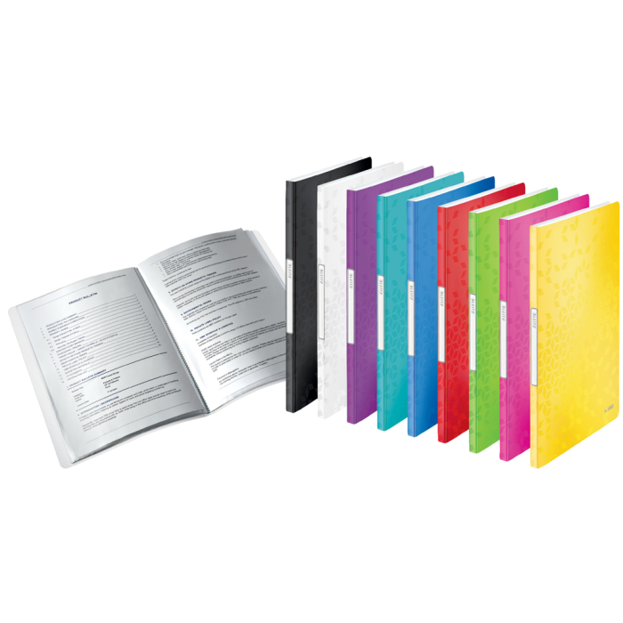 Katalógová kniha na prezentáciu dokumentov formátu A4, do ktorých sa často nahliada. Vyrobená z polypropylénu v dizajne WOW v žiarivej farbe. Vybavená 20 čírymi vreckami hrúbky 45 mic. a samolepiacou chrbtovou etiketou na popis. Väčšie balenie 10 ks. Kapacita 40 listov. Rozmery (š × v × h) 231 × 310 × 13 mm. Farba červená.