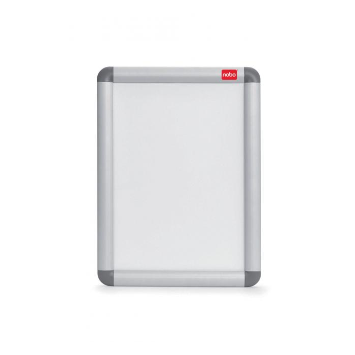 Rám na zobrazovanie informácií, plagátov alebo propagačných ponúk do interiéru aj exteriéru. Mechanizmus otvárania na  klip, antireflexná fólia z PVC na ochranu pred špinou a prachom, vkusný hliníkový rám s tmavosivými rohovými spojkami. Formát A4. Rozmery v × š × h : 248 × 370 × 17 mm. Dodávaný s montážnou sadou.