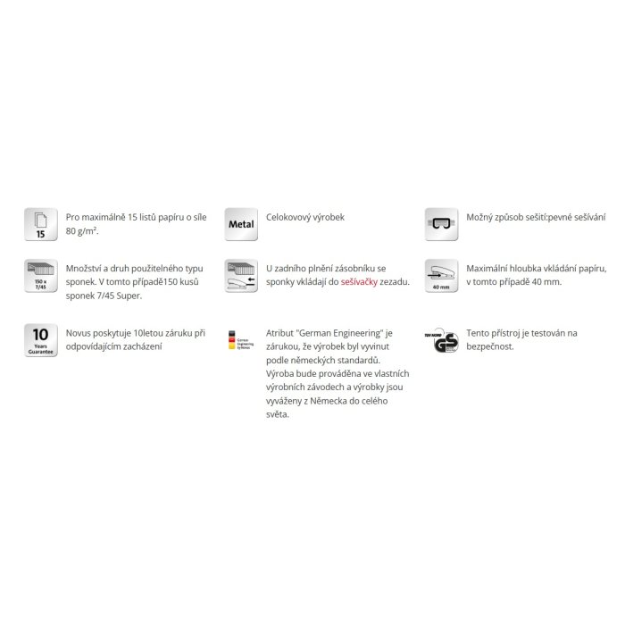 | Kapacita zošívania | 15 listov |