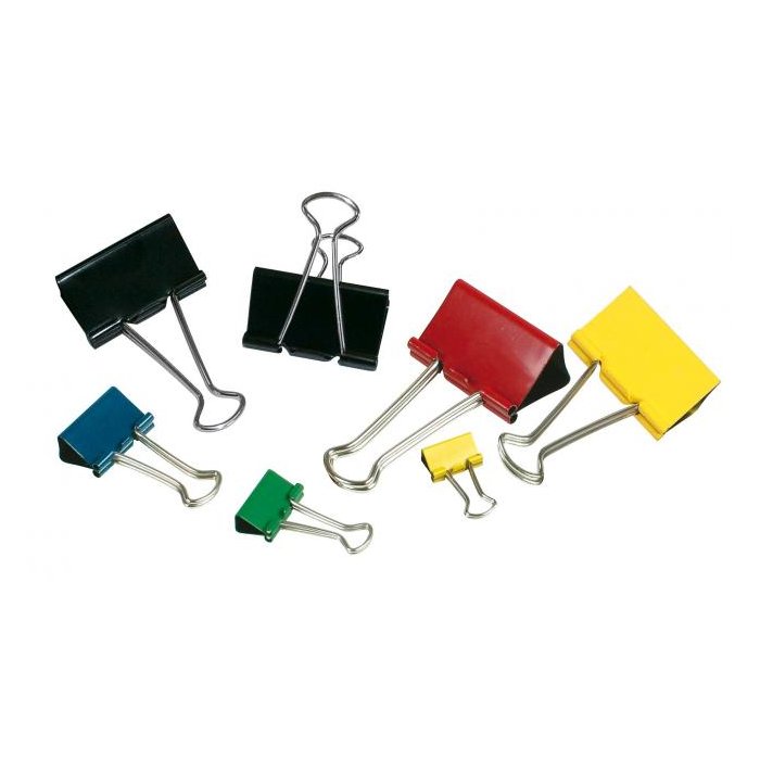 Klipy farebné v šírke 25 mm na zopnutie papierov. V balení 12 ks v mixe farieb (červená, žltá, zelená a modrá).