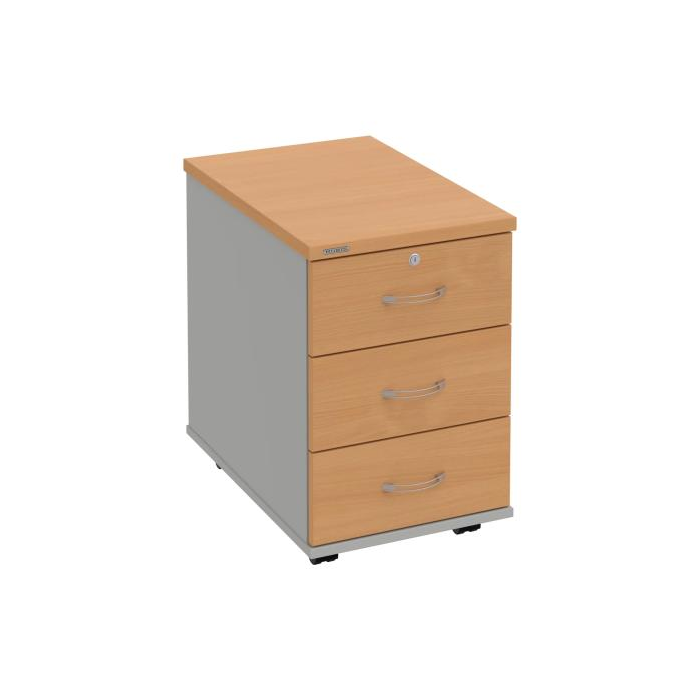 Kontajnery - všetko uložené a vždy poruke. Kontajnery sa väčšinou umiestňujú pod stoly. Mobilné modely sú vybavené kolieskami, je možné ich premiestniť podľa potreby. Základným materiálom korpusov je kvalitná laminovaná drevotriesková doska hrúbky 18 mm. Pre dlhšiu životnosť je na horný diel korpusu použitá doska, ktorej hrúbka je 25 mm. Korpusy a čelá zásuviek sú chránené proti poškodeniu hranou ABS 2 mm. Horná doska ma hĺbku 80. 3-zásuvkový kontajner má uzamykatelnú iba 1 zásuvku. Zásuvky sú z plastu, ktorý je ľahko umývateľný a vhodný pre jednoduchú údržbu. Praktickou súčasťou vrchnej zásuvky je prehľadný organizér a priestorové deliace priečky. Vaše ceruzky, sponky a ďalšie kancelárske potreby budú vždy na poriadku. Organizér a deliace priečky sú súčasťou každého kontajnera. Na kontajnery Hobis sa vzťahuje päťročná záruka.