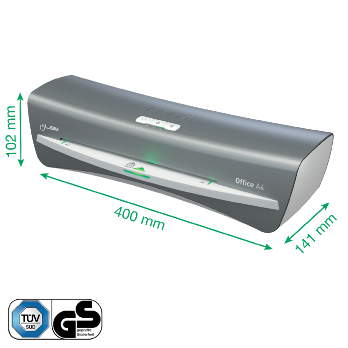 Kompaktné laminátory s rýchlym zahriatím. Ideálne pre menšie kancelárie. LED diódy a zvukový signál oznamujú, že je laminátor pripravený k práci. Nízka spotreba energie, automatické vypnutie po 30 minútach nečinnosti. Laminujú fotografie a iné dokumenty bez nosiča do hrúbky fólie 125 mic. Doba nahrievania cca 1 min. Odporúčané používať s Leitz UDT laminovacími fóliami. Certifi kované GS/ TUV/ CE. Farba sivá. Šírka vstupu 230 mm.