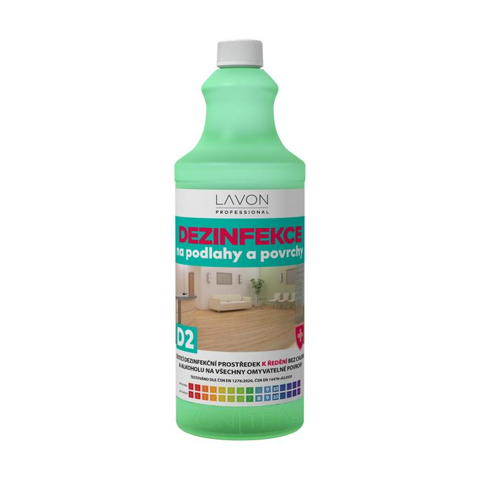 Dezinfekčný prostriedok LAVON na podlahy a povrchy D2 je biocídny čistiaci prípravok s vysokou penivosťou do potravinárstva, priemyslu, domácností a verejných priestorov. Určený na dezinfekciu a čistenie všetkých druhov podláh a nenasiakavých povrchov. Vysoká čistiaca a odmasťovacia účinnosť, vhodný aj na umývanie riadu. Likviduje baktérie a obalené vírusy: OTESTOVANÉ podľa STN EN 1276:2020, STN EN 14476+A2:2020.