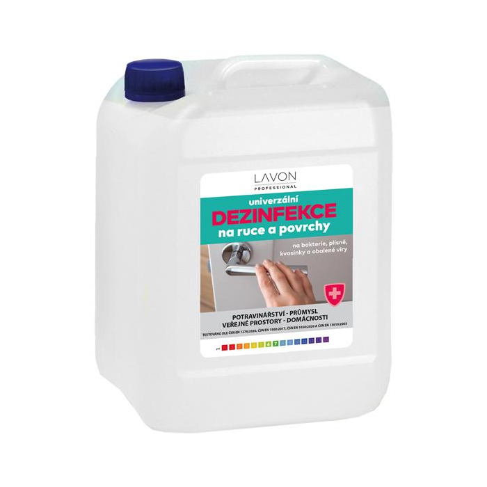 LAVON univerzálny dezinfekčný prostriedok na ruky a povrchy je biocídny výrobok na spotrebiteľské a profesionálne použitie v potravinárstve, priemysle, domácnostiach a verejných priestoroch. Je určený na dezinfekciu rúk, pracovných plôch alebo povrchov zariadení. Ako preventívne opatrenie používajte na miestach, ktoré prichádzajú často do kontaktu s rukami (držadlá, zábradlia, kohútiky atď.). Testované podľa noriem EN 1276:2020, EN 1500:2017, EN 1650:2020 a EN 13610:2003. Obsahuje 65 % alkoholu.
