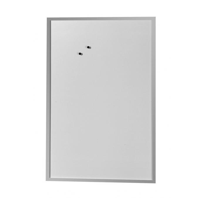 Biela magnetická popisovateľná tabuľa so sivým dreveným rámom. Súčasťou tabule je 1 kus popisovača, 2 kusy magnetov a 2 kusy očiek na zavesenie. Rozmery: 60x80 cm. Úprava: magnetická.