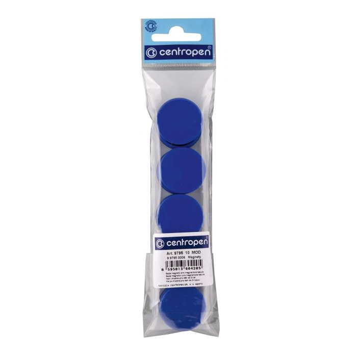 Silné magnety pre magnetické tabule zaliate v plaste. Balenie 10 ks. Farba modrá.