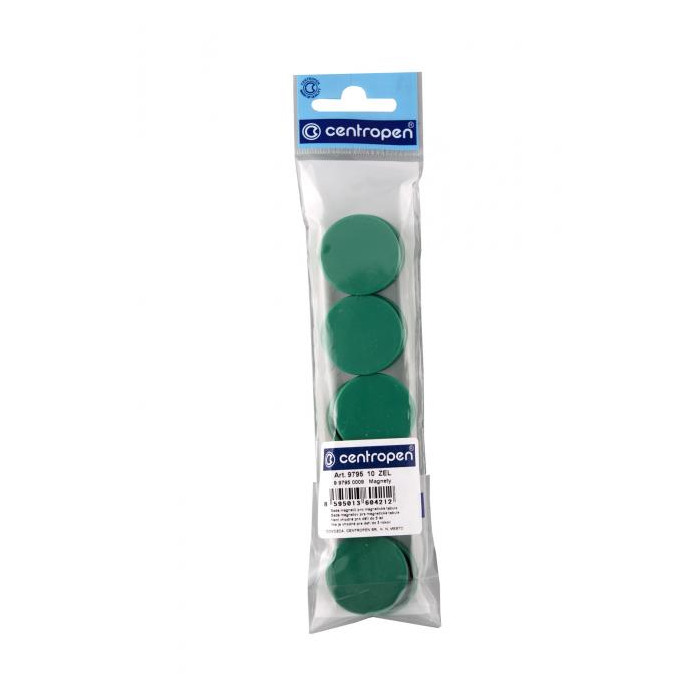 Silné magnety pre magnetické tabule zaliate v plaste. Balenie 10 ks. Farba zelená.