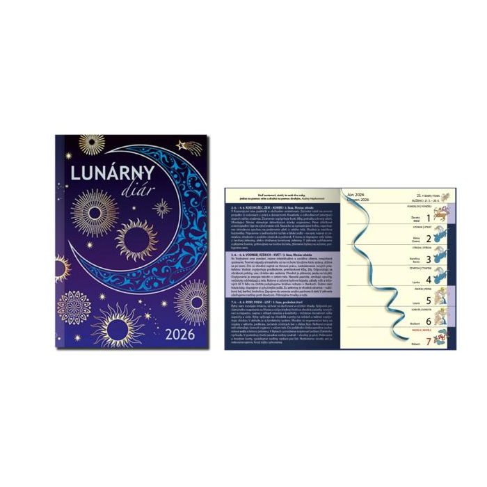 Obľúbený diár s graficky prepracovaným týždenným kalendáriom Vám spríjemní každý týždeň novým mottom spolu s praktickými radami, ktoré sú ovplyvňované fázami Mesiaca. Slovenské texty a kalendárium slovenské , druhý jazyk kalendária je český.