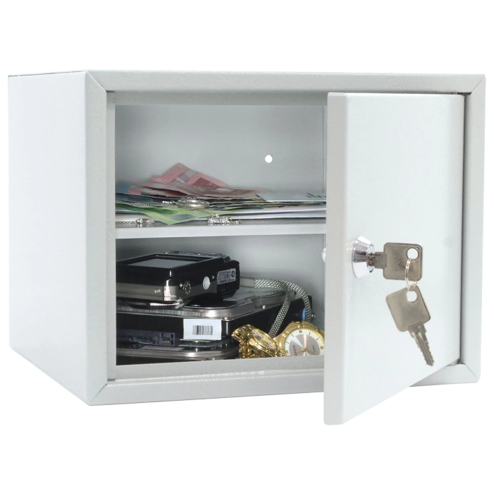 Sejf Home Case 2 je vhodný na uloženie peňaženky, osobných vecí, dokladov alebo kľúčov. Vo vnútri sa nachádza polička. Sejf je vyrobený z kvalitného pozinkovaného materiálu a má pripravené otvory na spodnej a zadnej strane. Materiál na upevnenie je súčasťou balenia.