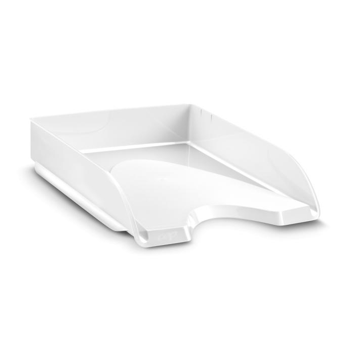 Elegantný, praktický a veľmi robustný široký odkladač na veľké dokumenty. Široký čelný výrez na ľahké vyberanie obsahu, dve bočné držadlá. Vertikálne stohovanie alebo stohovanie stupňovito dozadu. Materiál recyklovateľný polystyrén odolný voči nárazom. Rozmery 365 × 387 × 115 mm. Väčšie balenie 6 ks. Farba biela.