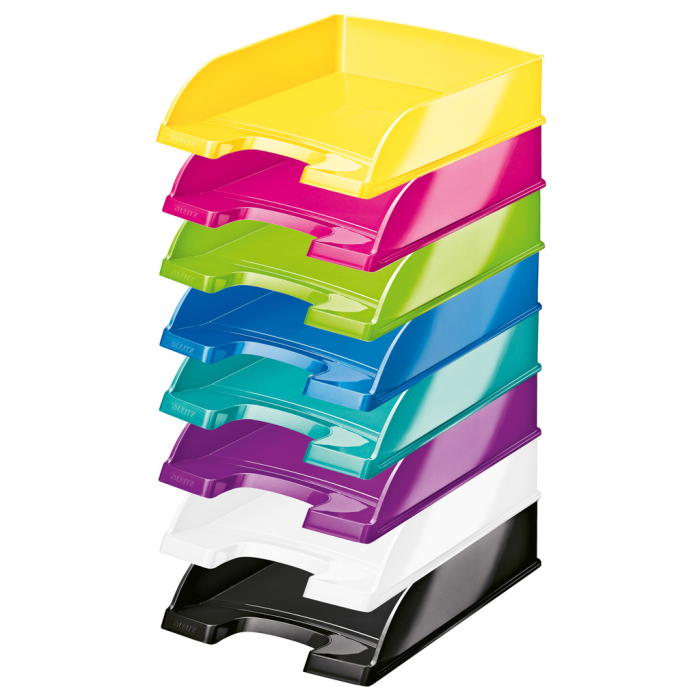 Ľahko stohovateľný plastový odkladač formátu A4 rady WOW v žiarivej farbe s možnosťou stohovania aj stupňovito dozadu. Použiteľný samostatne alebo stohovateľný do odkladacej steny. Vyššie bočné steny pre väčšiu kapacitu, extra veľký výrez na prednej časti a zošikmená odkladacia plocha na jednoduchý prístup k dokumentom. Maximálna stohovateľnosť 10 odkladačov. Väčšie balenie 5 alebo 10 ks.