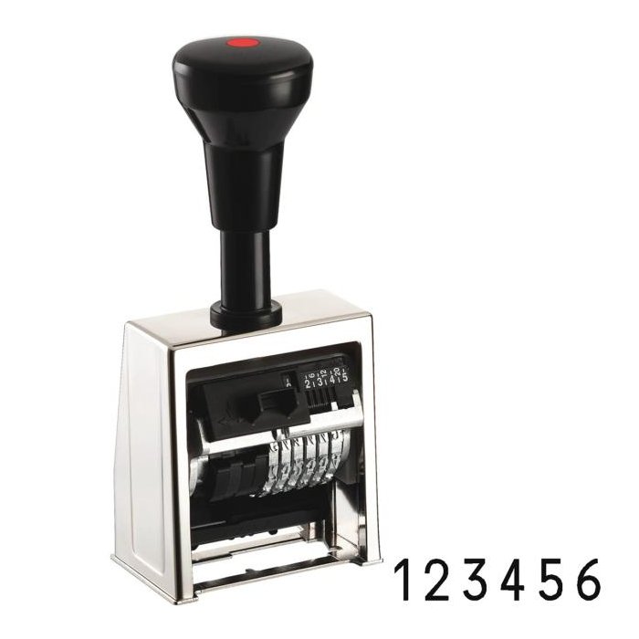 6-miestna paginovačka Reiner s jadrom zo špeciálnej zliatiny. Výška číslic 4,5 mm, 12 automatických pretočení. Náhradná poduška v čiernej farbe.