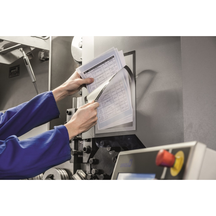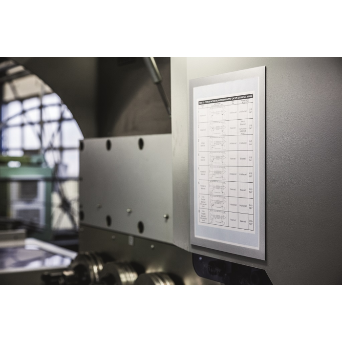 Panel s plne magnetickou zadnou časťou na posilnené držanie na kovových povrchoch. Jednoduché a rýchle vkladanie informácie formátu A4.
