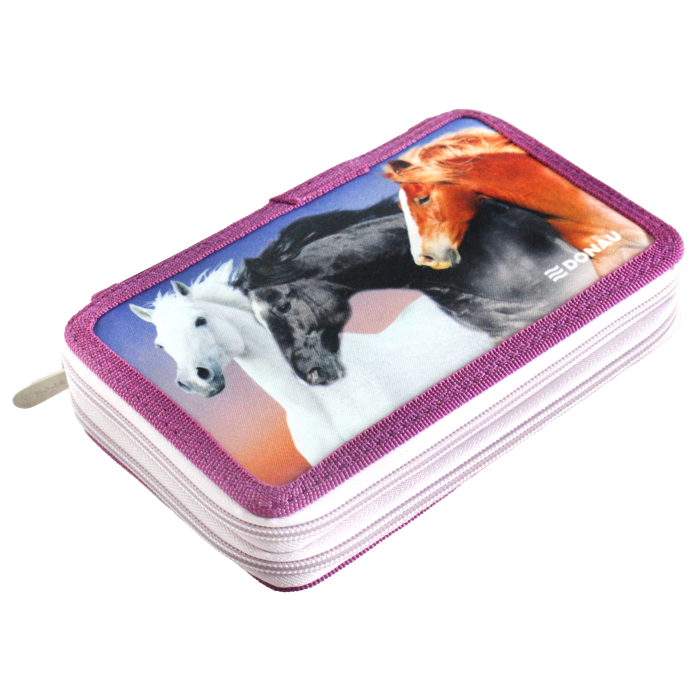 Peračník 2-zipsový s výbavou, v 6 rôznych dizajnoch. S praktickým vnútorným vreckom na drobnosti, vyrobený z odolného polyesterového materiálu. Výbava (23 dielov): 1 guma, 1 strúhadlo, 3 ceruzky, 1 pravítko, 1 rozvrh hodín, 8 fixiek, 8 farebných ceruziek. Rozmery: Š x V x H: 200 x 40 x 130 mm.
