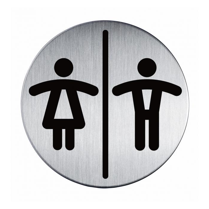Piktogram na vysoko kvalitnej brúsenej nehrdzavejúcej oceli. Vytlačený symbol je odolný voči poškriabaniu a silnému opotrebeniu. Priemer 83 mm, vďaka lepiacej páske na zadnej strane sa piktogram dá použiť na rôzne povrchy. Farba strieborná, potlač čierna.